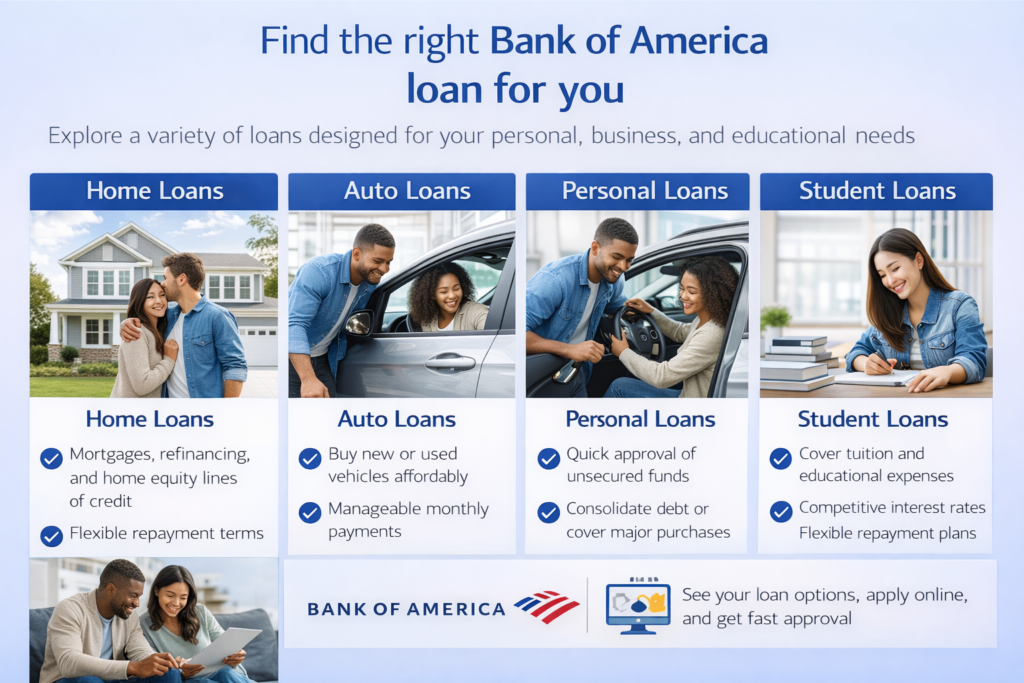 Bank of America provides a diverse selection of loans to meet various financial needs. These are designed for personal, business, and educational needs.