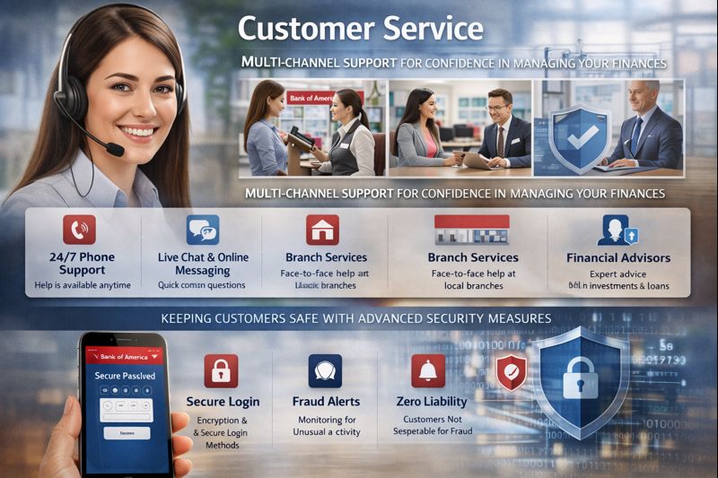 Bank of America prioritizes security. It uses encryption, secure login methods, and real-time fraud monitoring. Customers receive alerts for unusual activity. This helps prevent unauthorized transactions. Zero-liability policies ensure customers are not responsible for fraud.