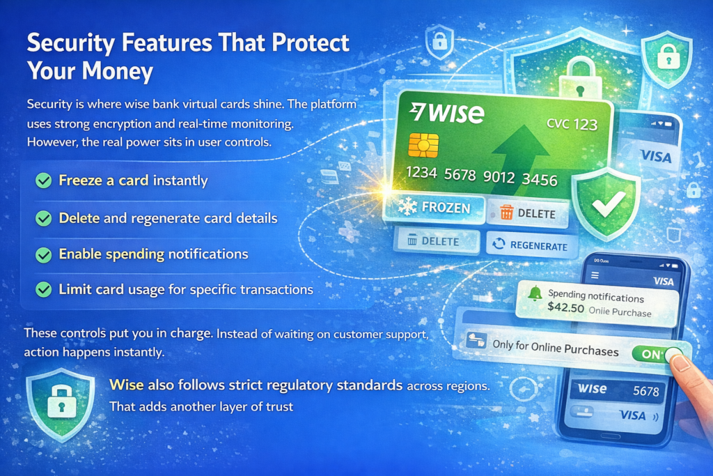 Security is where wise bank virtual cards shine. The platform uses strong encryption and real-time monitoring. However, the real power sits in user controls.