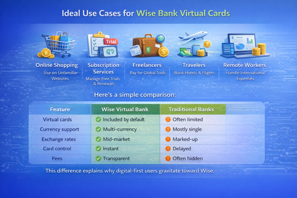 Wise bank virtual cards suit users who value control, clarity, and global access.